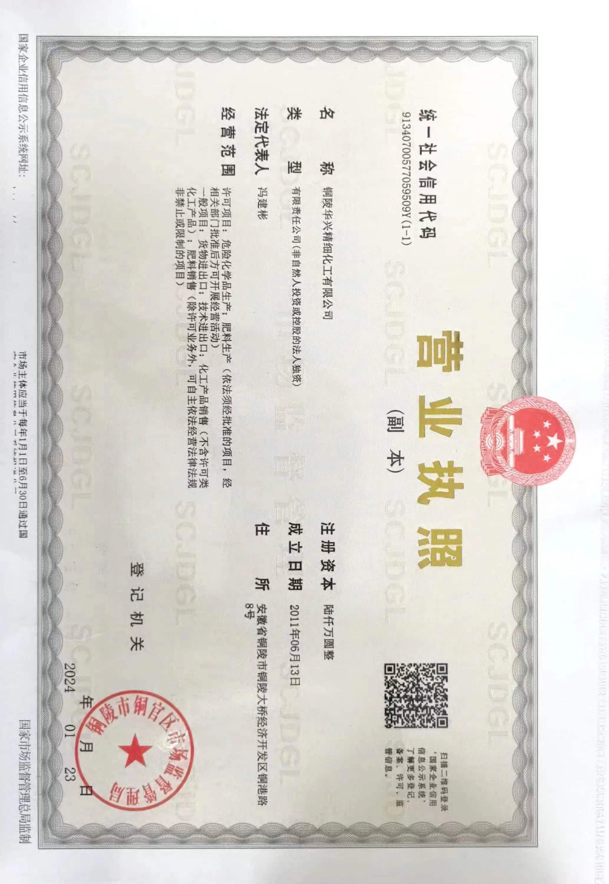 - 铜陵华兴精细化工有限公司位于铜陵市横港化工园,是铜陵化学工业集团下属铜陵市华兴化工有限公司的全资子公司。公司成立于2011年,注册资金6000万元,占地面积66000平方米,公司总投资约1.4亿元,年产值约1亿元,公司员工80人,各类专业技术人员15人。 公司主要产品为硫酸铵(年产10000吨)、过硫酸铵(年产20000吨)及过硫酸钠(年产5000吨),产品主要应用于土壤修复、电子、石油、染织、医药、水处理等行业。目前,公司过硫酸盐产能...